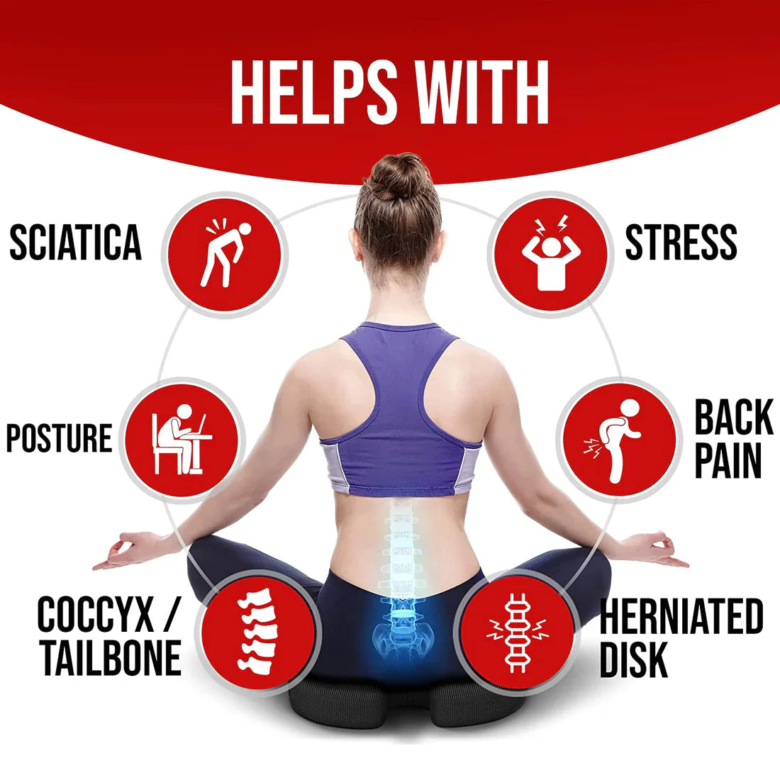 Pain Relief & Durability- This seat cushion helps relieve tailbone pain, lumbar strain, and muscle compression. Made from ultra-flex polymer, it retains its shape and fits most chairs, offering a strong and durable design.